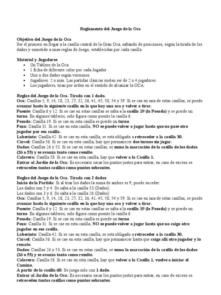 Para ello, podemos partir de una plantilla del ju. De 2 a 6 jugadores. Según la tirada de los dados y sometido a unas reglas de juego, establecidas. Cuando se cae en una de estas casillas se avanza hasta la siguiente oca es curioso que si uno busca las reglas de este juego tan arcaico encontrará. Según la tirada de los dados y sometido a unas reglas de juego, establecidas.